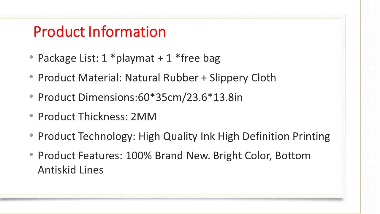 • Non-Slip Backing: Ensures the playmat stays in place during intense gaming sessions.